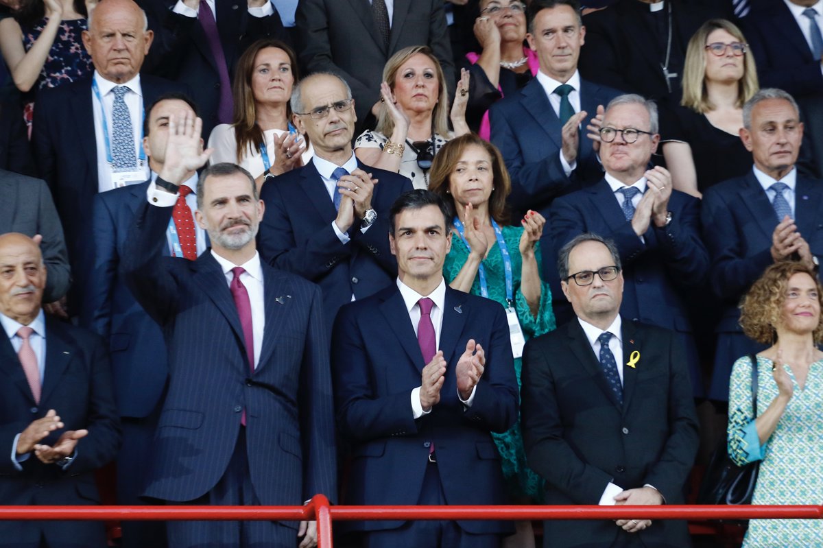 El Rey ha declarado inaugurados este viernes los Juegos Mediterráneos que se celebrarán en los próximos días en Tarragona, en una ceremonia a la que han asistido el presidente del Gobierno, Pedro Sánchez, y el presidente de la Generalitat, Quim Torra.