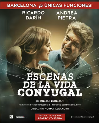 El Teatre Coliseum de Barcelona acogerá del 10 al 14 de junio 'Escenas de la vida conyugal', que cuenta con Ricardo Darín y Andrea Pietra como protagonistas y con la que regresan a la capital catalana, informa la organización en un comunicado este lunes.