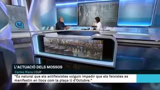 El diputado de la CUP en el Parlament Carles Riera ha considerado que las actuaciones de los Mossos d'Esquadra demuestran que "el 155 sigue vigente" dentro del cuerpo, y ha lamentado que, en su opinión, son agresivos con los antifascistas y muy tolerantes con los fascistas.