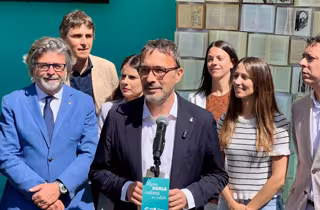El portavoz de Junts, Josep Rius, en una atención a los medios en el centro de Barcelona - EUROPA PRESS