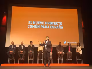 La ironía ha provocado risas entre el público que ha llenado el teatro Apolo de Barcelona, donde C's ha presentado su programa para las elecciones generales.