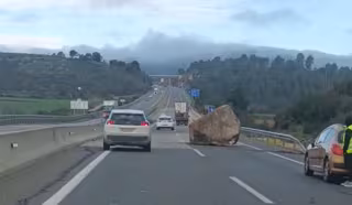 Según testimonios, cerca de las 8.30 horas de la mañana han encontrado una roca de grandes dimensiones en la carretera, que continúa con un carril cortado con 2 kilómetros de retenciones.