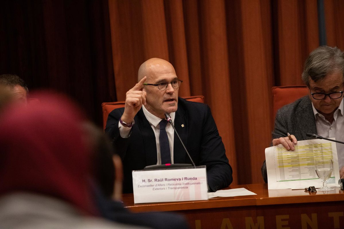 El exconseller de Asuntos Exteriores, Relaciones Institucionales y Transparencia de la Generalitat y preso del 'Procés', Raül Romeva, declara ante la Comisión de Investigación de la aplicación del 155 en Catalunya, en Barcelona /Catalunya, a 28 de enero - Pau Venteo - Europa Press