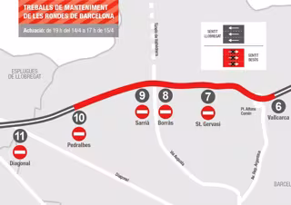 La circulación en la Ronda de Dalt desde la altura de la incorporación 8 de Borràs a la 6 de Alfons Comín en sentido Besòs quedará totalmente cortada desde este viernes al sábado, coincidiendo con Semana Santa, por trabajos de aglomerado.