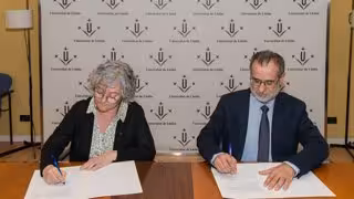 El director de RTVE Catalunya, Esteve Crespo, y la vicerrectora de Investigación de la Universitat de Lleida (UdL), Natlia Alonso, han firmado un convenio que permitirá al profesorado y estudiantes de Comunicación y Periodismo Audiovisual revisar las noticias generadas con Inteligencia Artificial (IA) sobre los resultados de las elecciones catalanas.