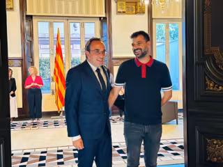 El presidente del Parlament, Josep Rull, ha recibido este miércoles al diputado de ERC Ruben Wagensberg en la Cámara catalana tras su regreso a Catalunya: "Me hace mucha ilusión".