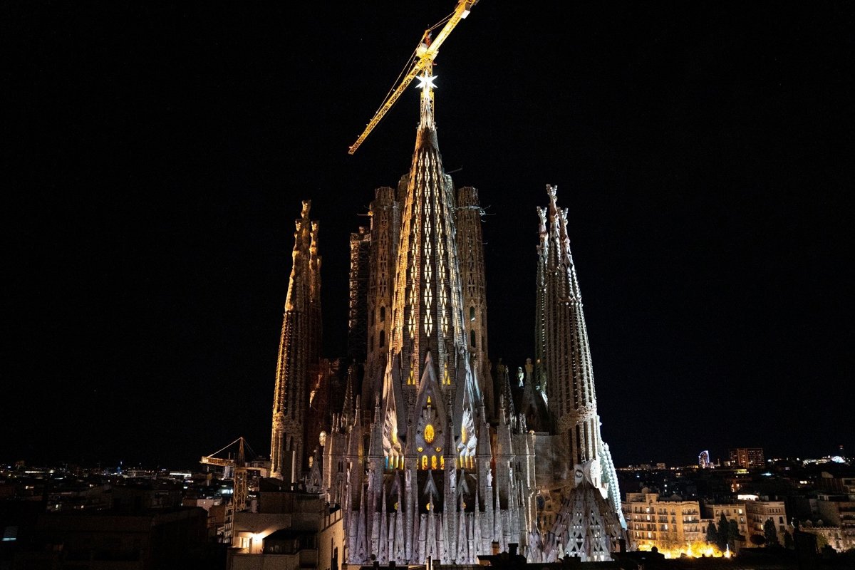 La Sagrada Familia ha inaugurado este miércoles la estrella de 12 puntas que corona la torre de la Virgen María, que se ha iluminado sobre las 19.50 horas, después de que el arzobispo de Barcelona, el cardenal Juan José Omella, la haya bendecido.