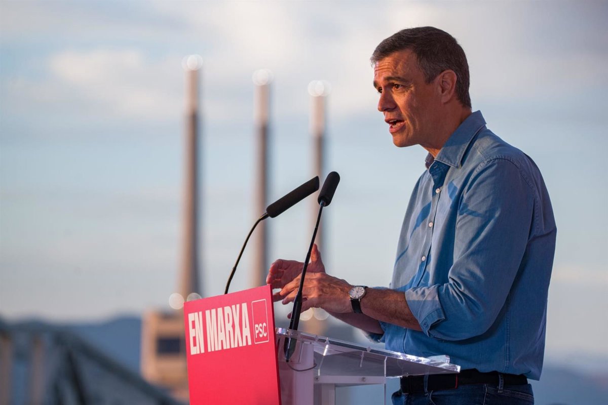 El presidente del Gobierno, Pedro Sánchez, en el acto del PSC en el Frum. - LORENA SOPENA - EUROPA PRESS