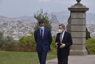 El presidente del Gobierno, Pedro Sánchez, y el primer ministro italiano, Mario Draghi, en un encuentro con motivo del acto de clausura de la XXXVI Reunió Cercle dEconomia, a 18 de junio de 2021 en Barcelona - DAVID OLLER - EUROPA PRESS