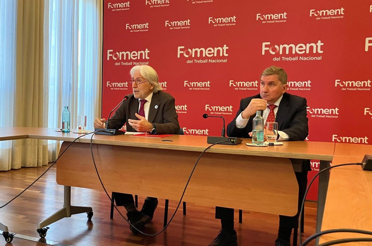 El presidete de Foment del Treball, Josep Sánchez Llibre, y el secretario general, David Tornos. - EUROPA PRESS