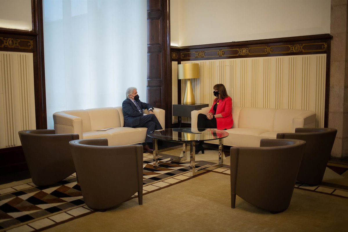 La presidenta del Parlament, Laura Borrs se reúne con el presidente de Foment del Treball Josep Sánchez Llibre, en el Parlament, en Barcelona, Catalunya, (España), a 19 de marzo de 2021. Durante la jornada de hoy, Pimec ha trasladado a la presidenta de - David Zorrakino - Europa Press