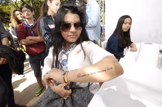 Fuentes de la organización han explicado a Europa Press que el número de frases tatuadas hasta las 16.00 horas asciende a 60, y que han tatuado a más mujeres que hombres.