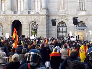 Los Mossos d'Esquadra han impedido su acceso a la plaza con un gran dispositivo policial, que solo ha permitido la entrada de asistentes a la concentración de Vox y prensa acreditada.