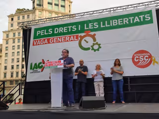 Por parte del otro sindicato convocante, la Intersindical Alternativa de Catalunya (IAC), Xavier Tarragón ha criticado que en los últimos años se ha sufrido un desmantelamiento de los servicios, la 'ley Aragons', políticas que atentan contra la salud de los trabajadores, la brecha salarial y la feminización de la pobreza: "Vivimos en un Estado de excepción permanente contra las clases trabajadoras".