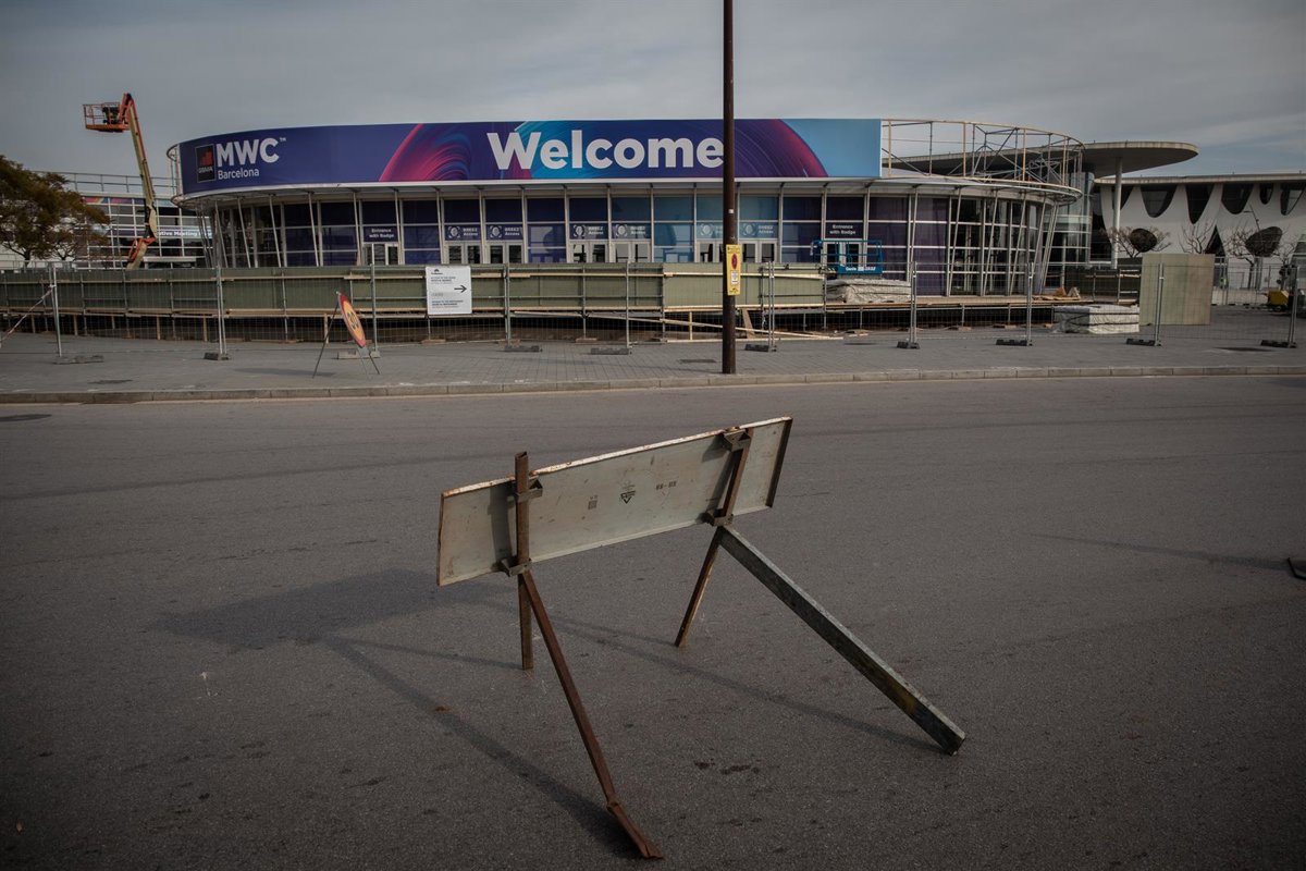 Exterior del pabellón del Mobile World Congress (MWC) durante el desmantelamiento de los stands de la feria tras su cancelación por la crisis del coronavirus y las anulaciones de empresas, en Barcelona/Catalunya (España) a 13 de febrero de 2020. - David Zorrakino - Europa Press