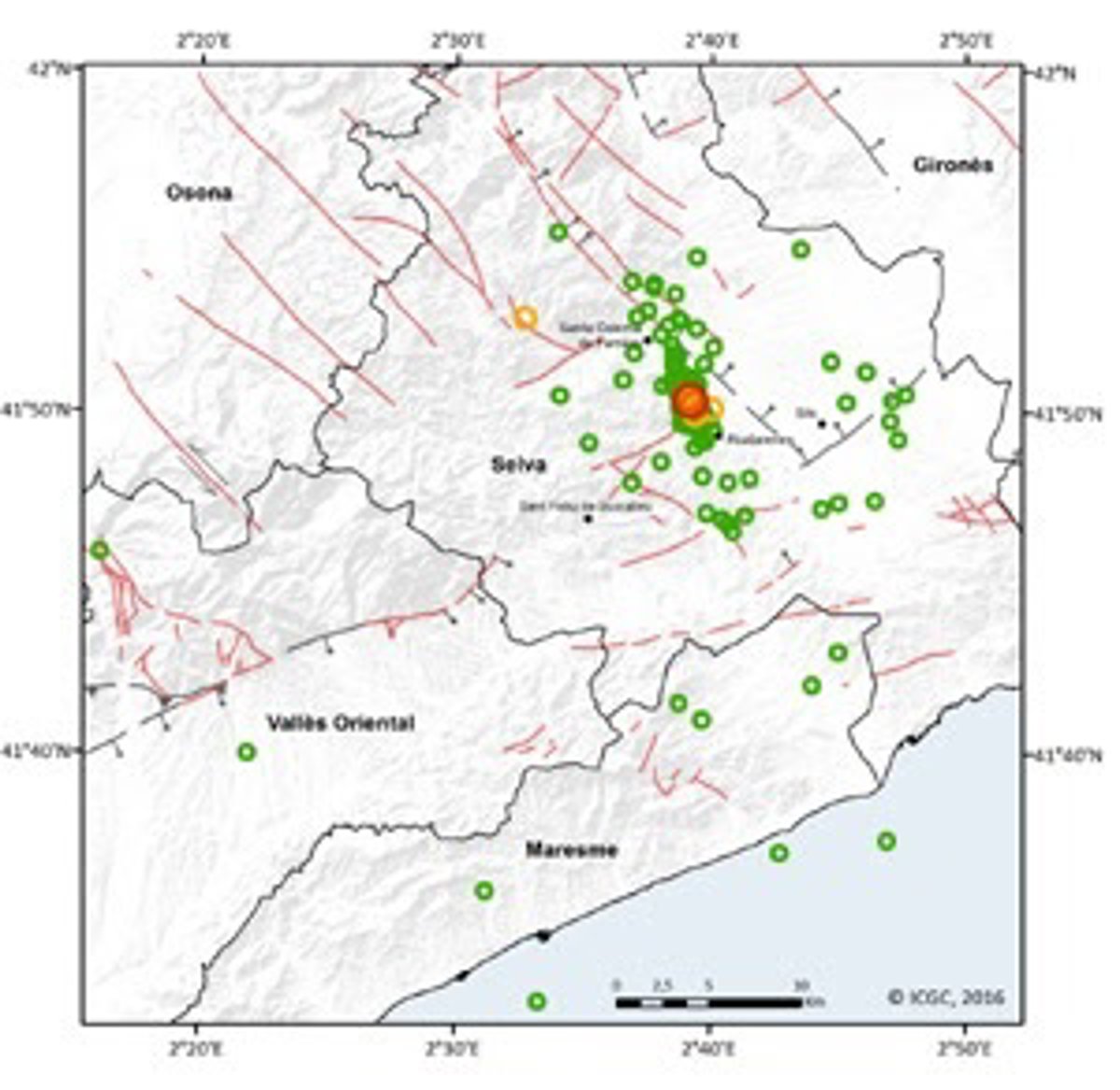 El principal terremoto tuvo lugar el pasado 4 de septiembre, con epicentro entre Santa Coloma de Farners y Riudarenes (Girona), y que tuvo una magnitud de 3,6 grados en la escala Richter, y al que siguieron un total de 190 réplicas hasta el pasado jueves.