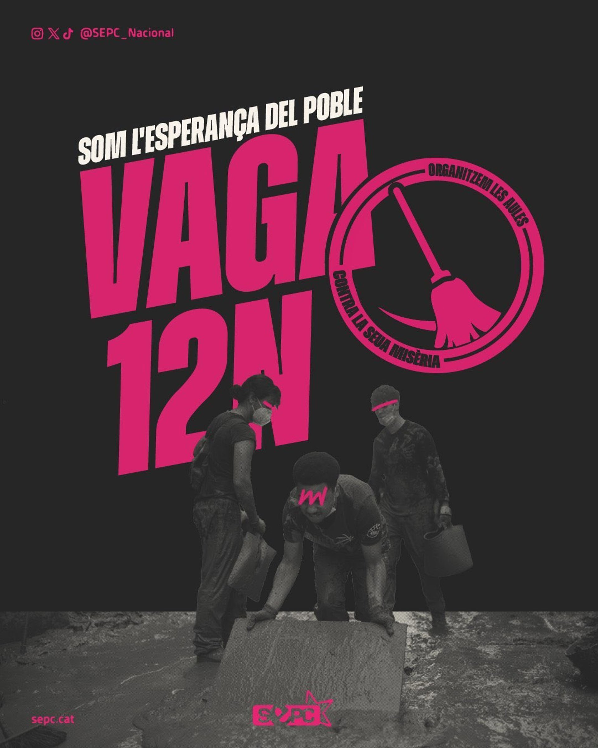 El Sepc ha convocado huelga estudiantil en escuelas, institutos, centros de FP y universidades el martes 12 de noviembre en Catalunya, las Islas Baleares y la Comunidad Valenciana, en solidaridad con los afectados por la DANA y para pedir responsabilidades políticas al "gobierno asesino" de Carlos Mazón.