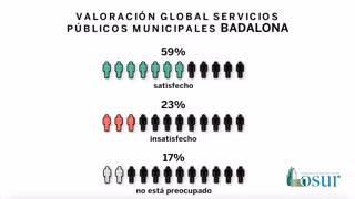 El 59% de badaloneses están satisfechos con el conjunto de los servicios municipales (3 puntos por debajo de la media nacional) y el 23% de los encuestados se muestran insatisfechos con los servicios (2 puntos por encima de la media nacional).
