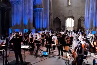 La Seu Vella de Lleida acoge un concierto con músicos profesionales y sanitarios, en homenaje a las víctimas de la pandemia y a los profesionales en primera línea durante el estado de alarma. - JORDI GÓMEZ/IEI