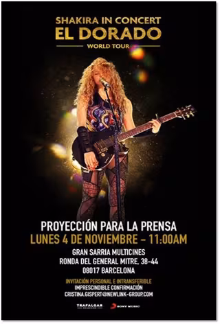 Cartel del largometraje "Shakira en concierto: El Dorado World Tour" - GLOBALLY