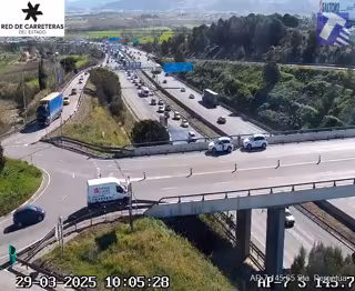 Dos carriles de la AP-7 en Santa Perpètua de Mogoda (Barcelona) siguen cortados sobre las 13.30 horas de este sábado en sentido sur por el incendio de un camión esta mañana que ha provocado retenciones.