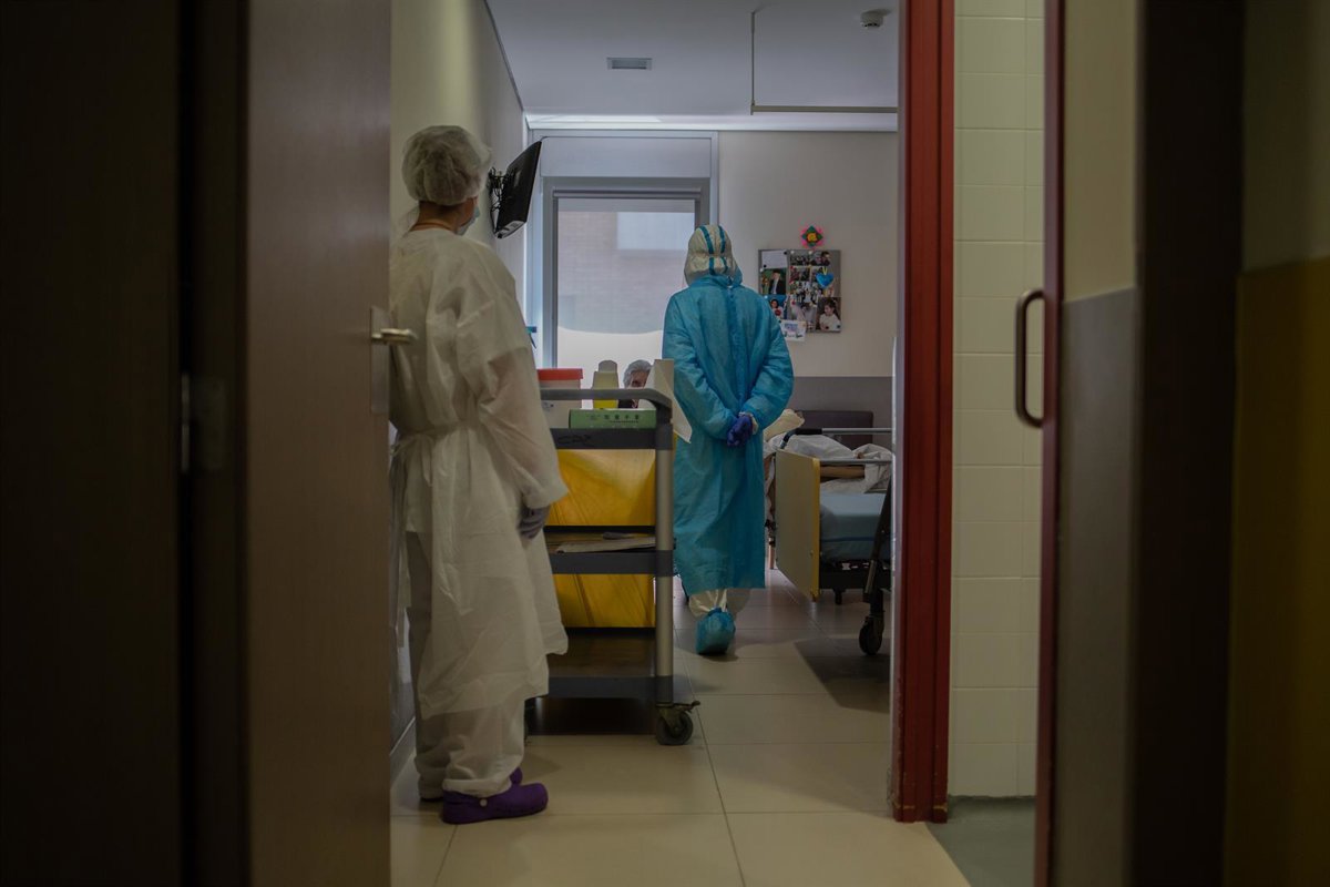 Voluntarios de la ONG Proactiva Open Arms realizan un test rápido de Covid-19 a un residente en su habitación de la Residencia Geriátrica Redós de Sant Pere de Ribes/Barcelona/Catalunya (España) a 30 de abril de 2020. - David Zorrakino - Europa Press - Archivo