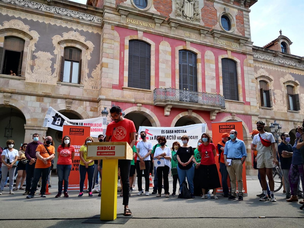 El Sindicat de Llogateres, movimientos sociales y los grupos parlamentarios de ERC, Junts, CUP y comuns han reclamado este viernes que el Gobierno no impugne en el Tribunal Constitucional (TC) la ley catalana que regula el precio del alquiler y que se apruebe una ley estatal en este sentido.