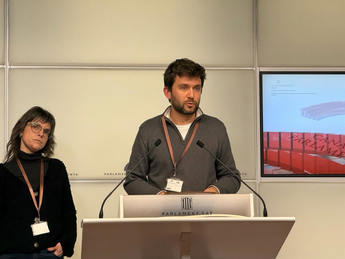 El portavoz del Sindicat de Llogateres, Enric Aragonès, en rueda de prensa en el Parlament. - EUROPA PRESS