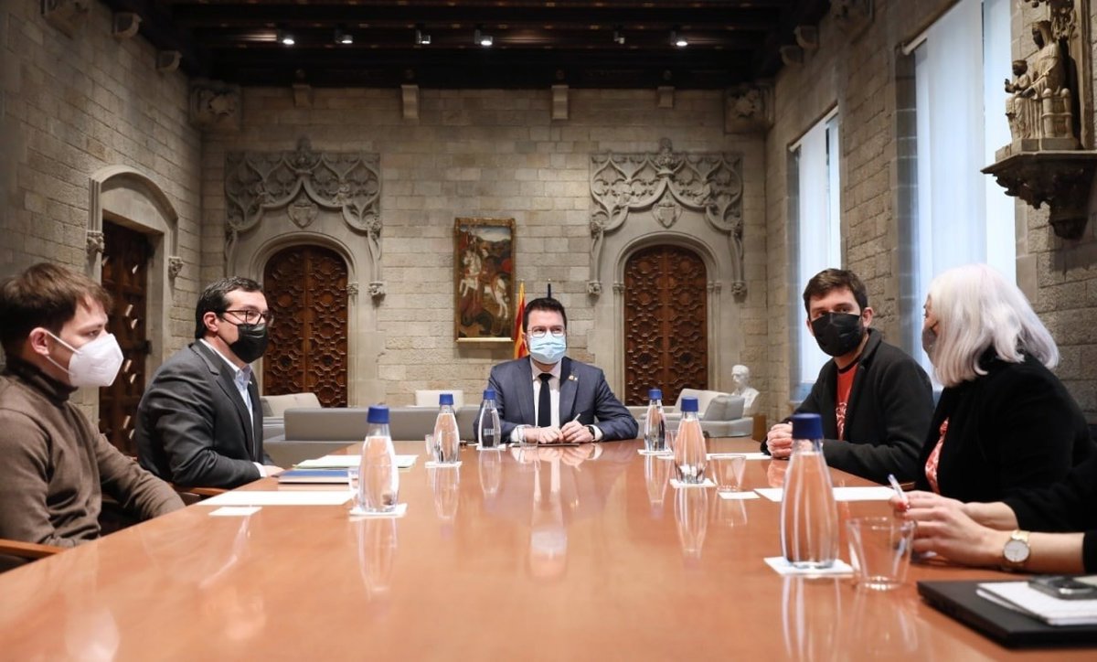 El Sindicat de Llogateres en una reunión con el presidente de la Generalitat, Pere Aragons, este lunes - SINDICAT DE LLOGATERES