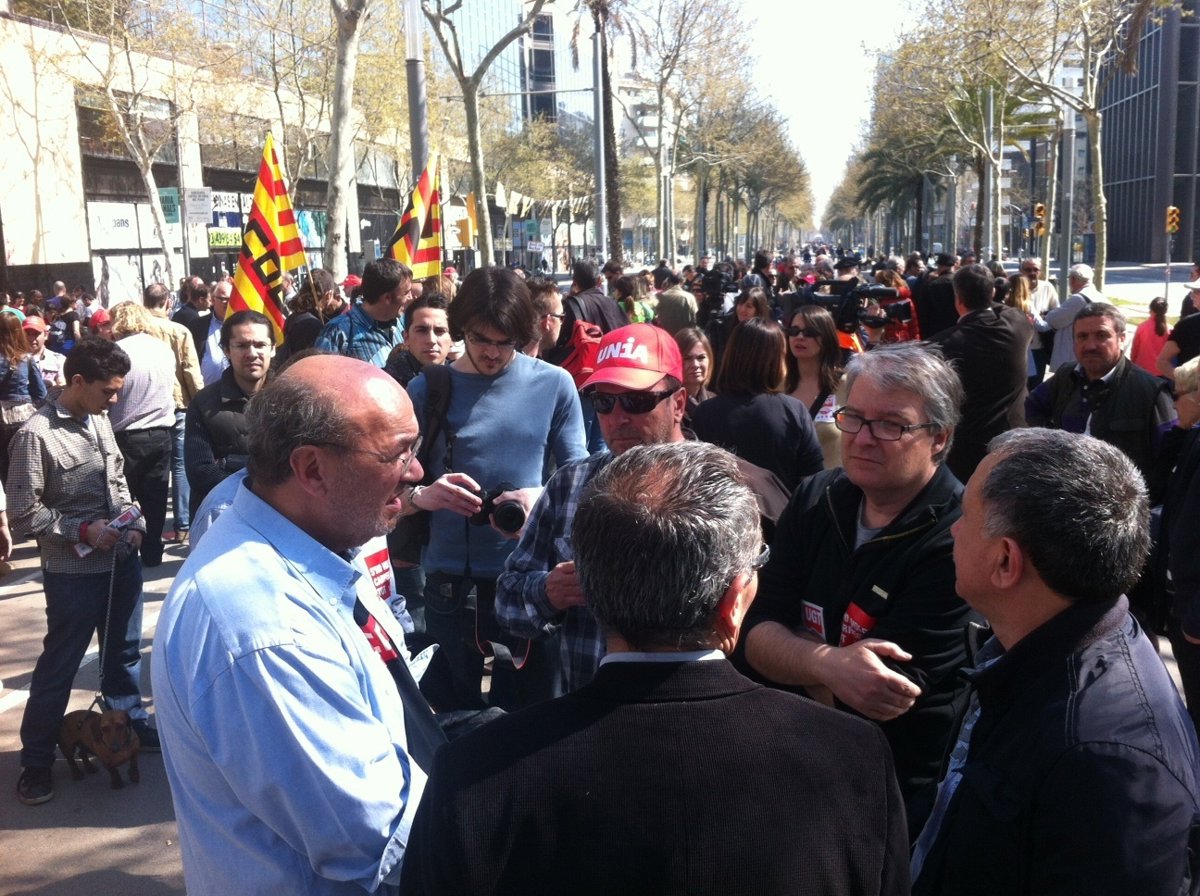 Los líderes sindicales han hecho un llamamiento a participar en la manifestación de esta tarde en Barcelona, que partirá a las 18.00 horas desde la confluencia de la avenida Diagonal con Passeig de Gràcia, y que han asegurado que será "cívica y ciudadana".