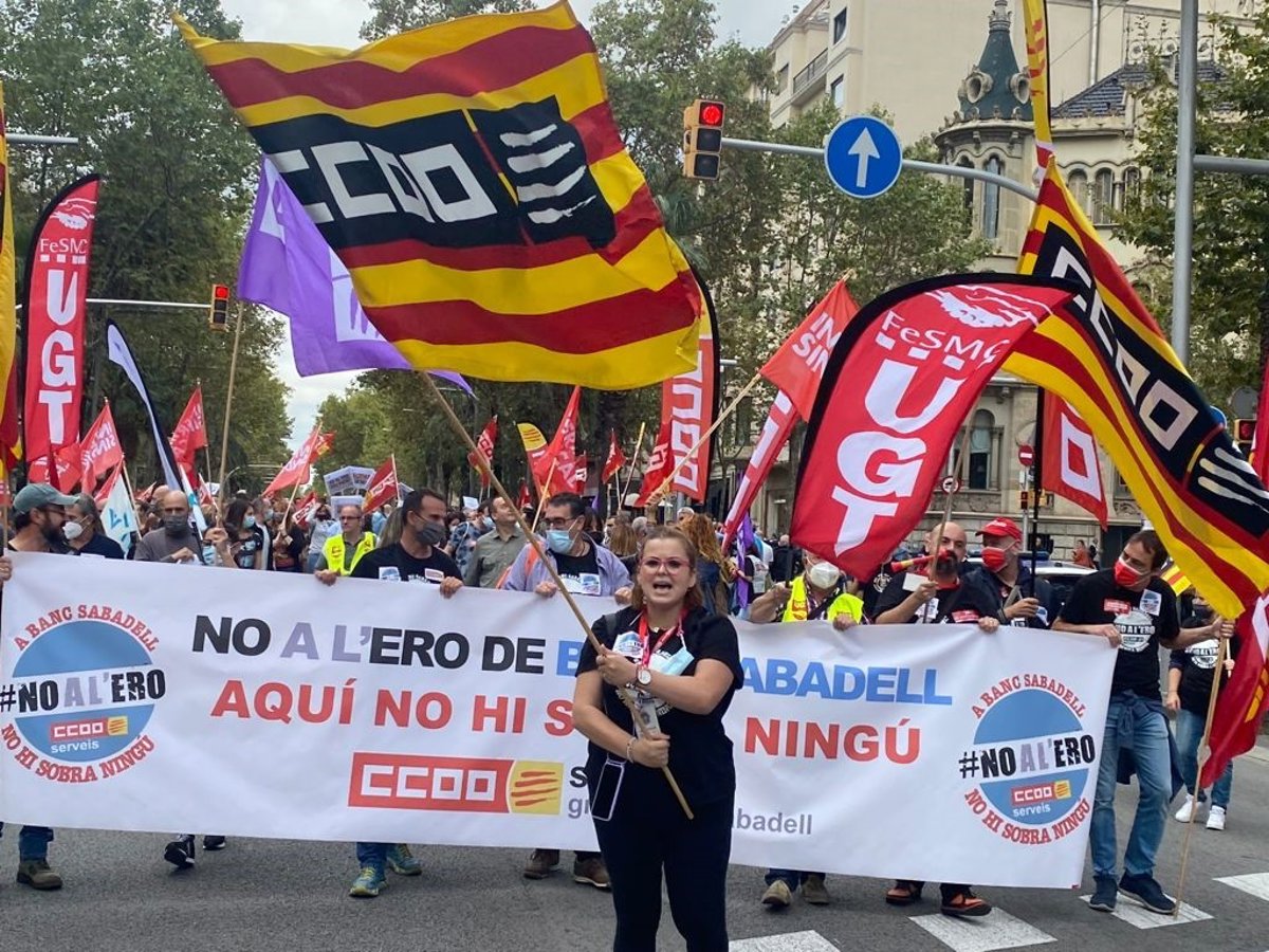 Concentración en contra del ERE del Banco Sabadell en Barcelona - CCOO DE CATALUNYA