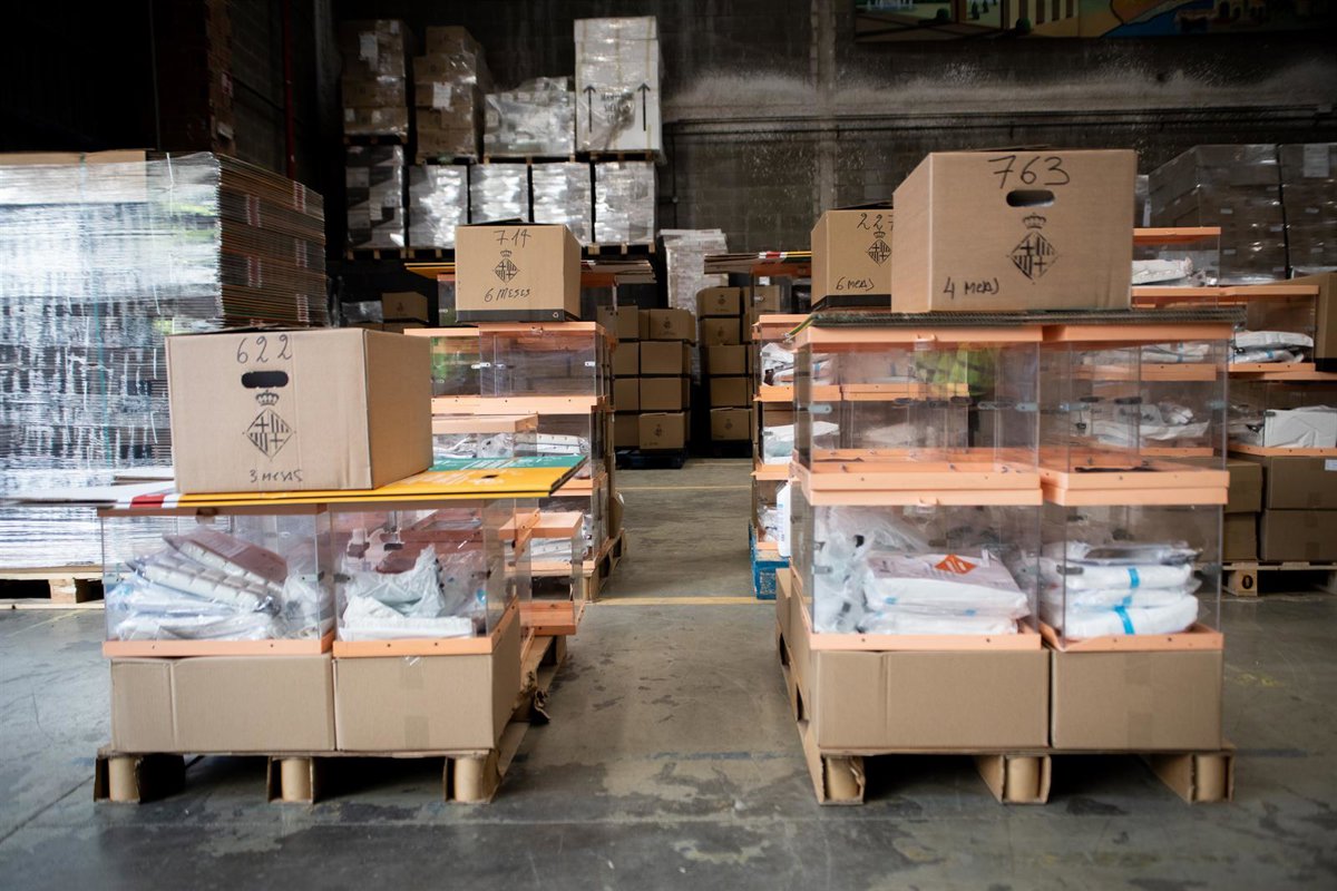 Material electoral para los próximos comicios de Cataluña en un almacén del Ayuntamiento de Barcelona, en Barcelona, Catalunya (España), a 3 de febrero de 2021. Para poder votar "con total seguridad" y sin ningún riesgo para la salud, el Ayuntamiento h - Marc Brugat - Europa Press