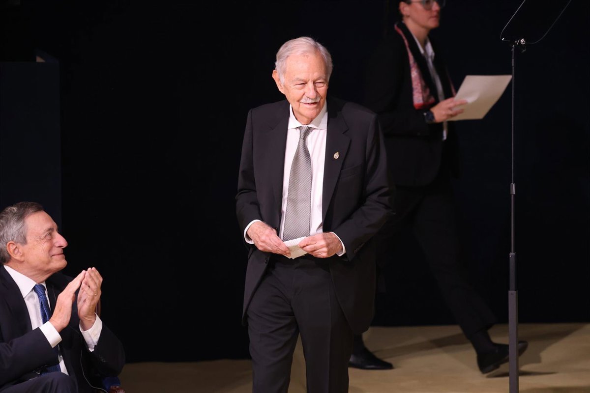 Mario Draghi aplaudiendo a Mendoza el viernes al recibir los dos un Premio Princesa de Asturias - Raúl Terrel - Europa Press