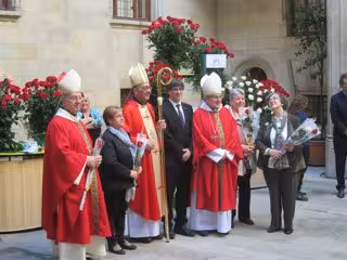 Tras la misa, el arzobispo de Barcelona ha bendecido las rosas en el patio del Palau de la Generalitat, acompañado de Sistach y el presidente de la Generalitat.