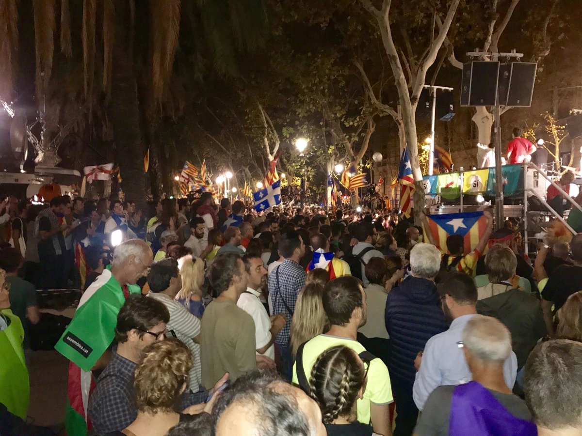 "Las horas que hagan falta. Aquí estaremos hasta que liberen a todos los detenidos y las detenidas", es la consigna que se ha proclamado por megafonía y que las 21.41 horas una multitud de personas estaba en disposición de cumplir con cánticos como 'Libertad detenidos'.