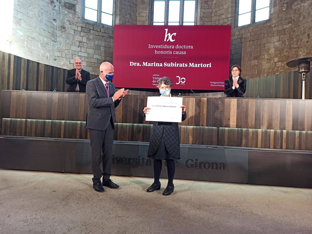 La Universitat de Girona (UdG) ha investido este jueves doctora 'honoris causa' a la socióloga Marina Subirats por su trayectoria "en el ámbito de los estudios de género y coeducación".