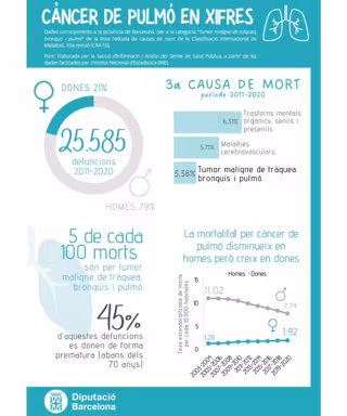 Coincidiendo con la Setmana Sense fum, que se celebra hasta el 31 de mayo, la Diputación de Barcelona ha analizado los datos de las últimas décadas en la demarcación de Barcelona que "muestran el vínculo entre la enfermedad y el tabaquismo", una relación que sigue patrones diferentes entre mujeres y hombres.