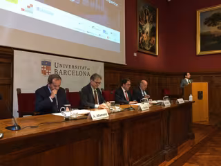 (I-D) El Secretario General Iberoamericano, Andrés Allamand, El Ministro De Universidades, Joan Subirats, El Vicerrector De La UB, Raúl Ramos, El Presidente De La Crue, Juan Romo, Y El Rector De La UB, Joan Gurdia - EUROPA PRESS