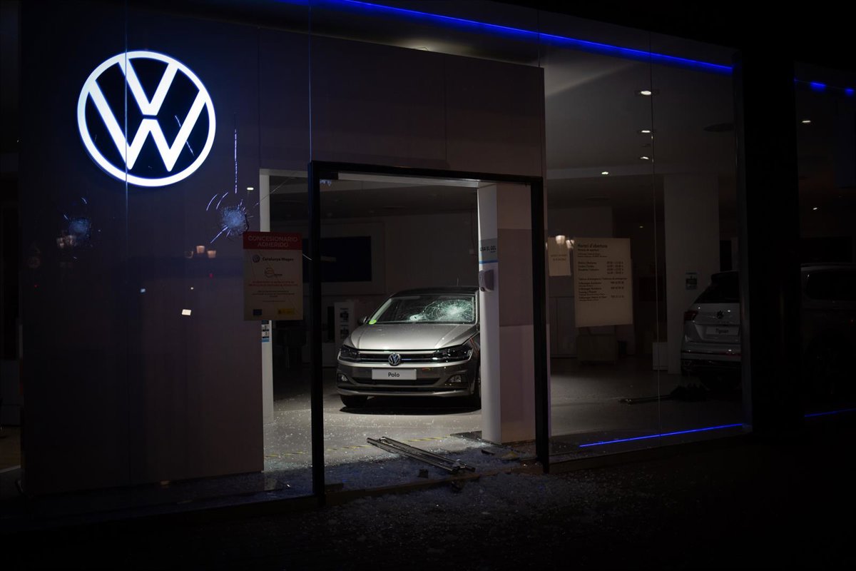 En la segunda noche de disturbios en la capital catalana --que también se han producido en Lleida, Girona y otras ciudades españolas--, un grupo ha destrozado coches de un concesionario de Gran Via con Rambla Catalunya.