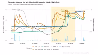Los datos se recogen mediante la Xarxa de Monitoratge de Sòls de Catalunya (XMS-Cat) del ICGC desplegada en el 2017 y que actualmente cuenta con 21 estaciones repartidas por Catalunya, con sensores situados a profundidades diferentes que miden cuanta agua hay en cada capa de suelo.