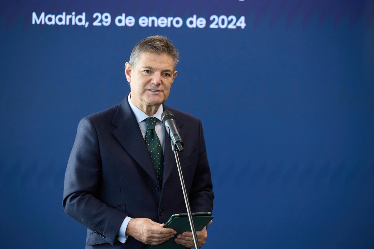 El exministro de Justicia Rafael Catalá interviene durante el acto de presentación de la campaña 'Que nadie robe tu tranquilidad', en la sede de Legálitas, a 29 de enero de 2024, en Madrid (España). - Jesús Hellín - Europa Press