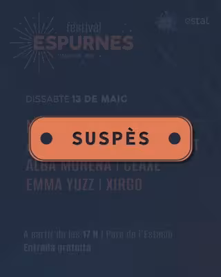 El Festival Espurnes de Llagostera (Girona) ha suspendido la celebración de su sexta edición, prevista para este sábado 13 de mayo, por la lluvia de los últimos días, que ha imposibilitado el montaje, y ante la previsión meteorológica para el fin de semana.