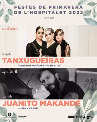 Las Festes de Primavera de L'Hospitalet de Llobregat (Barcelona) contarán con las actuaciones de las gallegas Tanxugueiras y del cantautor Juanito Makandé los días 22 y 23 de abril respectivamente en el recinto de La Farga, ha informado la promotora The Project en un comunicado este martes.