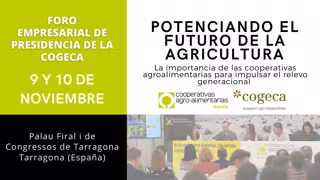 El Palacio Ferial y de Congresos de Tarragona reunirá a más de 250 jóvenes cooperativistas europeos del 9 al 10 de noviembre en el foro empresarial 'Potenciando el futuro de la agricultura. La importancia de las cooperativas agroalimentarias para impulsar el relevo generacional'.