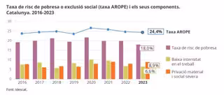 La tasa de riesgo de pobreza o exclusión social, la tasa Arope, en Catalunya fue del 24,4% en 2023, tres décimas menos que en 2022 cuando fue del 24,7%.
