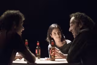 'Sota la ciutat', de la compañía Arcàdia, es "la crónica de las ilusiones perdidas" sobre una pareja obstinada en dar un sentido extraordinario a sus vidas, una obstinación que comparten todos los personajes: tanto los que están arriba del todo y están desesperados para mantenerse como los que luchan para llegar allí.