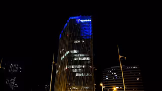 Sede de Telefónica iluminada de azul. - TELEFÓNICA