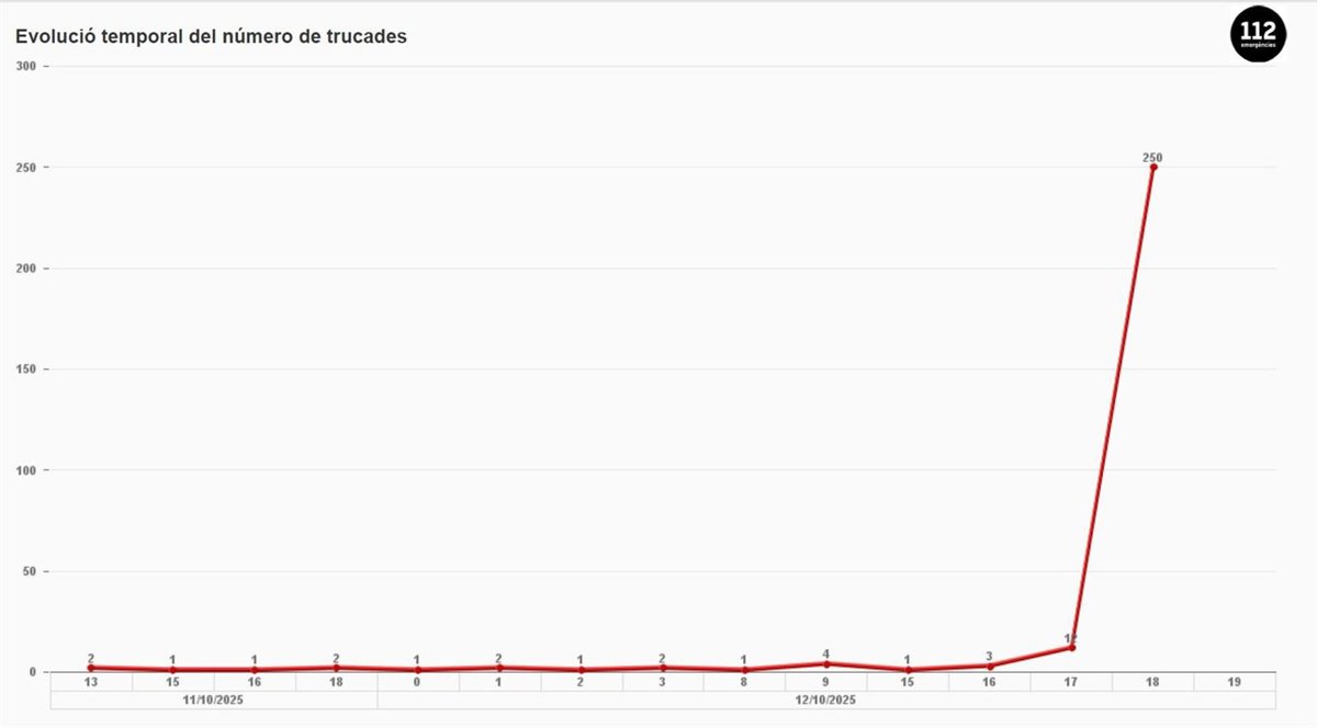 El teléfono de emergencias 112 ha recibido hasta las 18 horas de este domingo 283 llamadas que han generado 142 expedientes relacionadas con el episodio de lluvias que está afectando algunas comarcas de Tarragona.