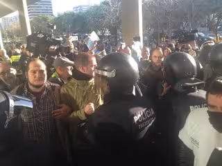 Cuando Garganté iba a realizar declaraciones a los medios, los urbanos han sacado carteles pidiendo su dimisión y algunos activistas se los han arrancado, lo que ha generado que se empezaran a empujarse e increparse.
