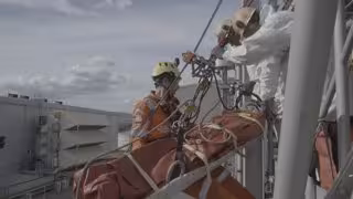 Los ejercicios han consistido en la simulación, por un lado, de la caída de un trabajador mientras desmontaba un andamio de 21 metros de altura y, por otro, de un operario que participaba en los trabajos de limpieza de la caldera.
